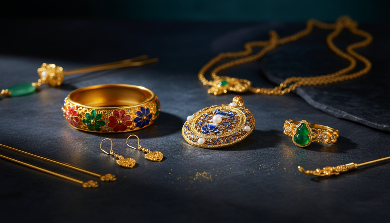 Enamel cloisonné is a traditional craft where fine metal wires form delicate outlines, and each cell is filled with colored enamel and fired to create a smooth, glass-like finish. The result is vivid color, precise detail, and a refined artisanal shine.