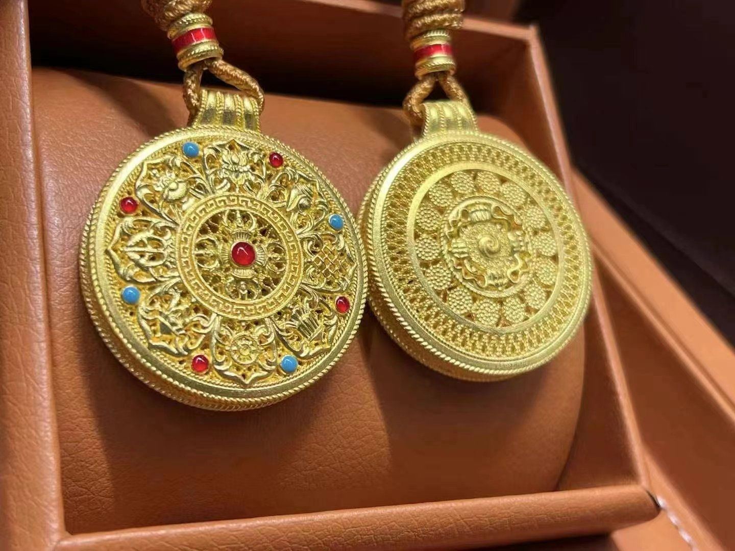 The eight treasures — such as pearls, lotus, and the Dharma wheel — signifyhappiness, prosperity, longevity, joy, wealth, wisdom, peace, and good fortune. The compass representsclarity and steadiness, guiding the wearer along a smooth and auspicious path.
